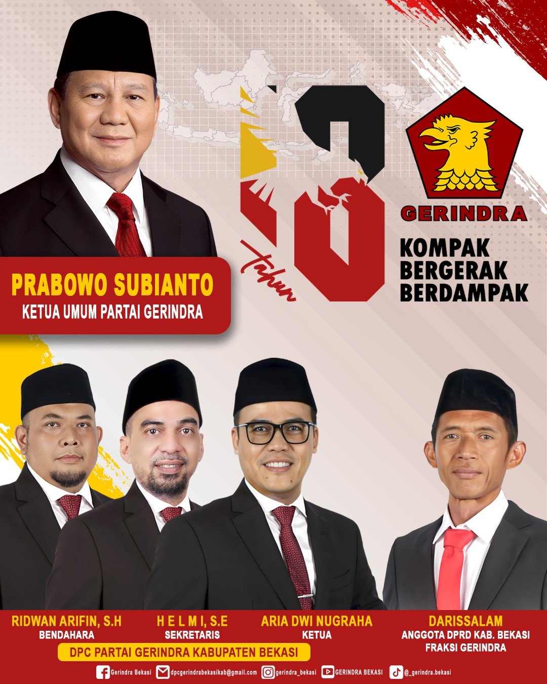 Anggota DPRD Kabupaten Bekasi Darissalam Mengucapkan Selamat Hut Partai Gerindra Yang Ke-18